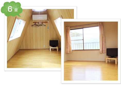 バンガローは6畳タイプとゆったりした9畳タイプです。